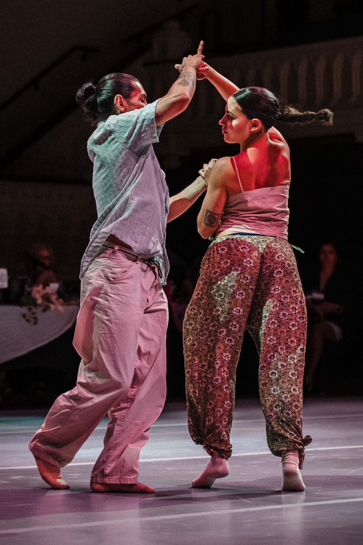 Echoing the sensation of a soft breeze and the quiet rhythm of flowing water, the work creates an atmosphere of calm that is never still, but alive with subtle shifts and connections. The choreography moves between moments of intimacy and openness, revealing a space where friendship, joy, and quiet contentment can emerge and expand.